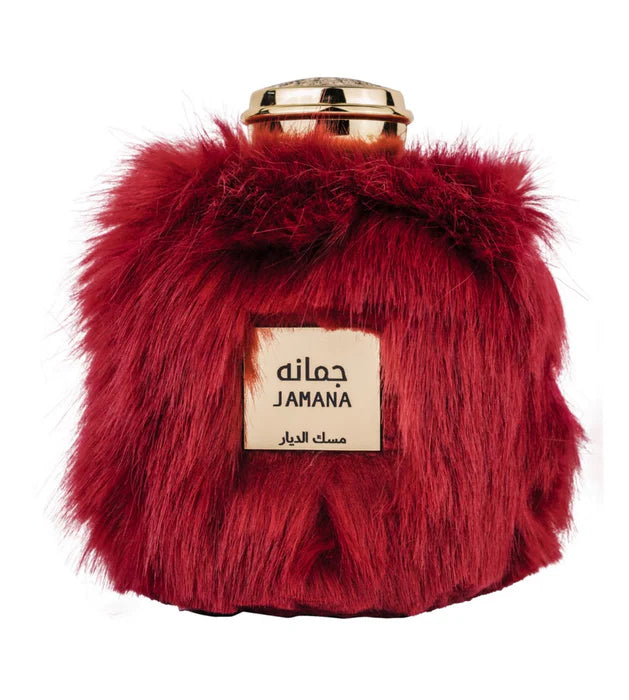 El frasco de Jamana no pasa desapercibido: su acabado en terciopelo rojo lo convierte en una verdadera joya decorativa. Cada detalle está pensado para transmitir lujo y tradición, dos valores esenciales en la perfumería árabe. Este perfume no solo se lleva en la piel, se exhibe con orgullo.